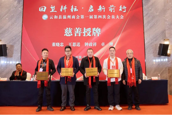 1月22日,云和县温州商会召开第一届第四次会员大会,云和县慈善总会会长黄文伟为8家在“慈善一日捐”活动中踊跃捐款的爱心企业颁发慈善捐赠牌子,表彰他们积极履行社会责任、助力慈善事业发展的善行义举,让“随手公益、人人慈善”成为社会新风尚。