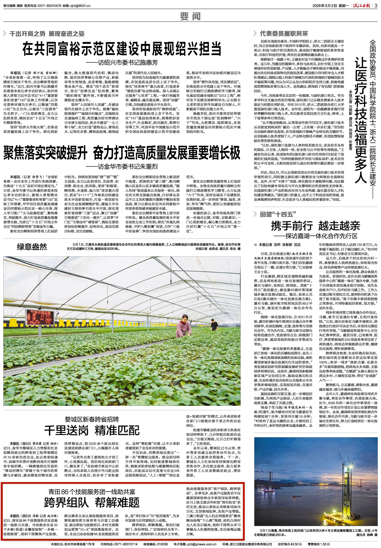 3月2日,浙江日报3版刊发。